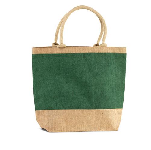 TWO TONE JUTE GROCERY TOTE WITH PADDED WEBBED HANDLES