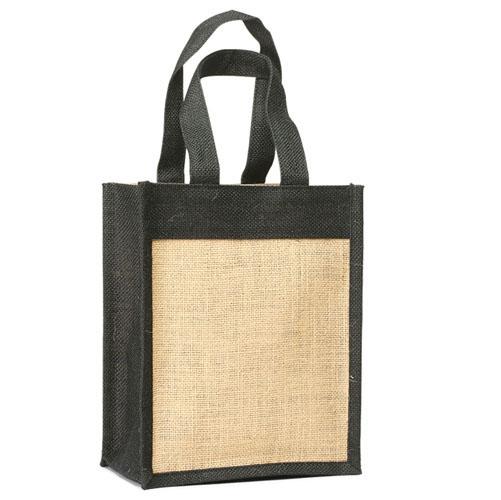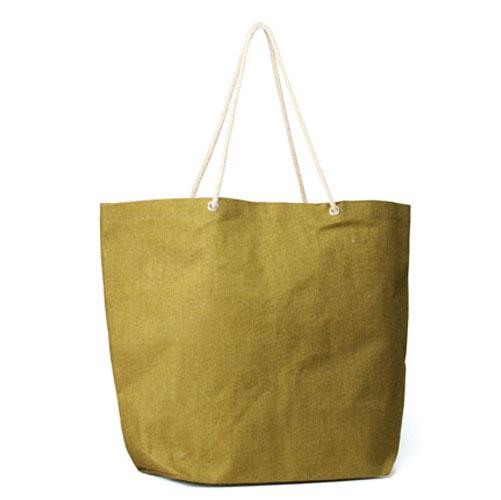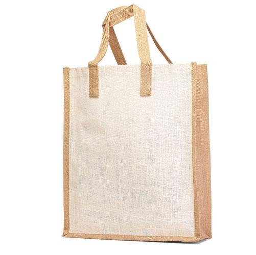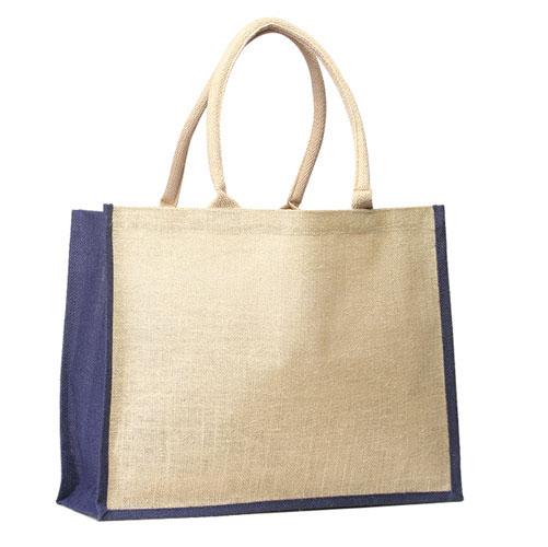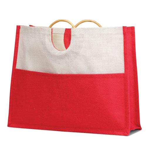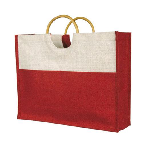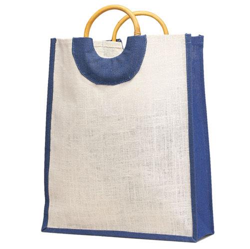 Two Tone Jute Shopping Bag with Natural Bamboo Handle