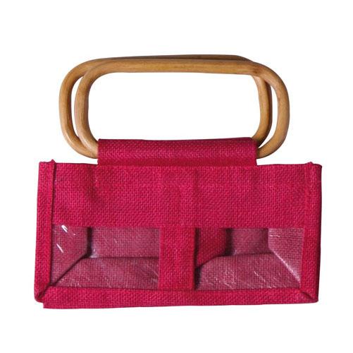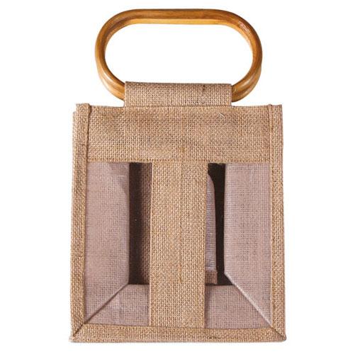 Four Wine Bottle Jute Bagwith Plastic Window and natural Cane Handles.